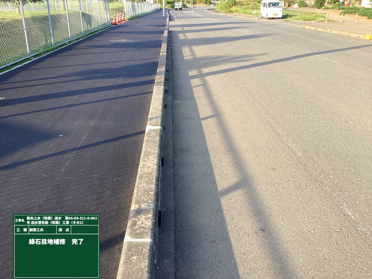 送水管工事の路面復旧は、仮舗装をしていたところを剥がすところから始まります。
