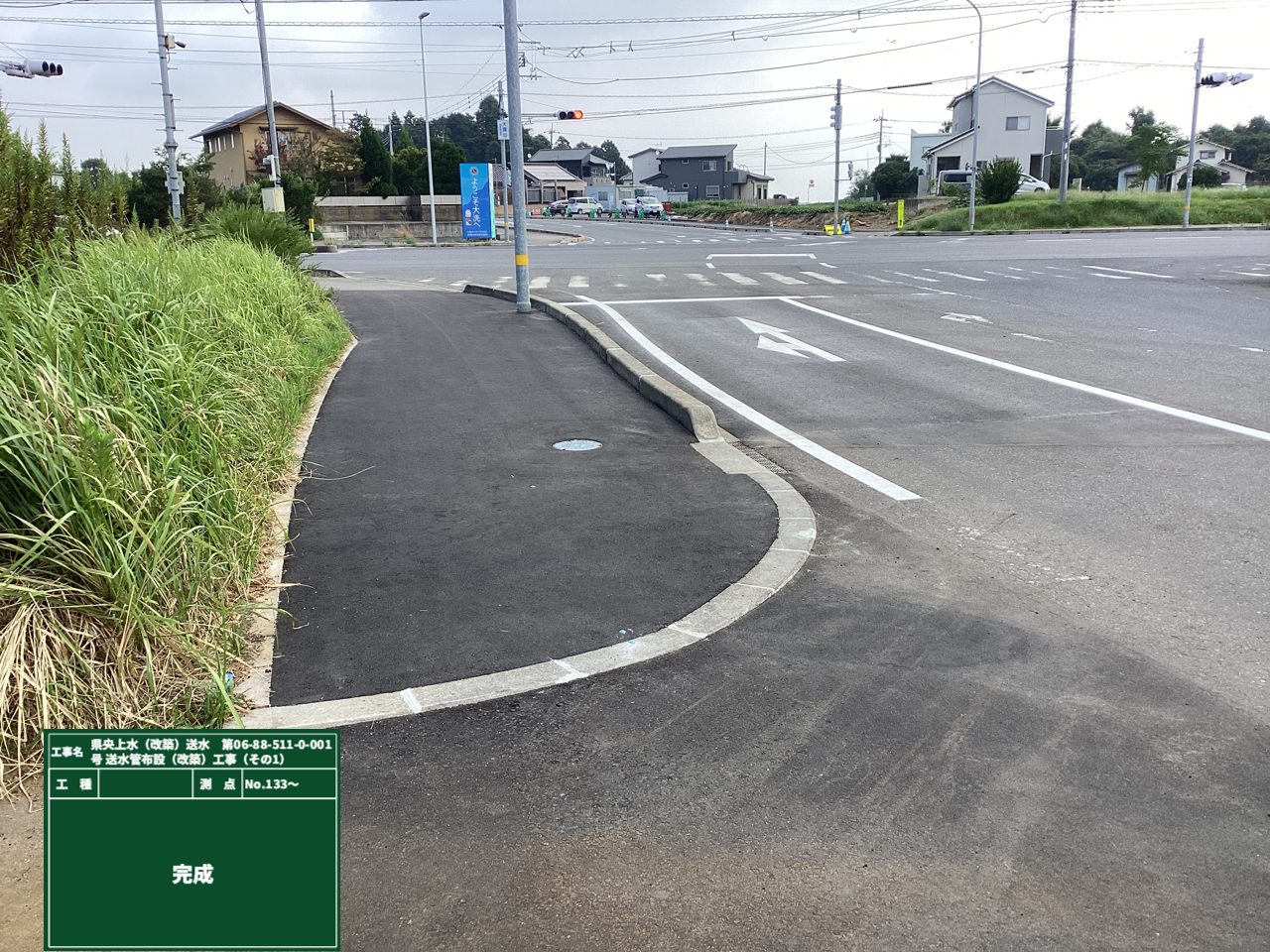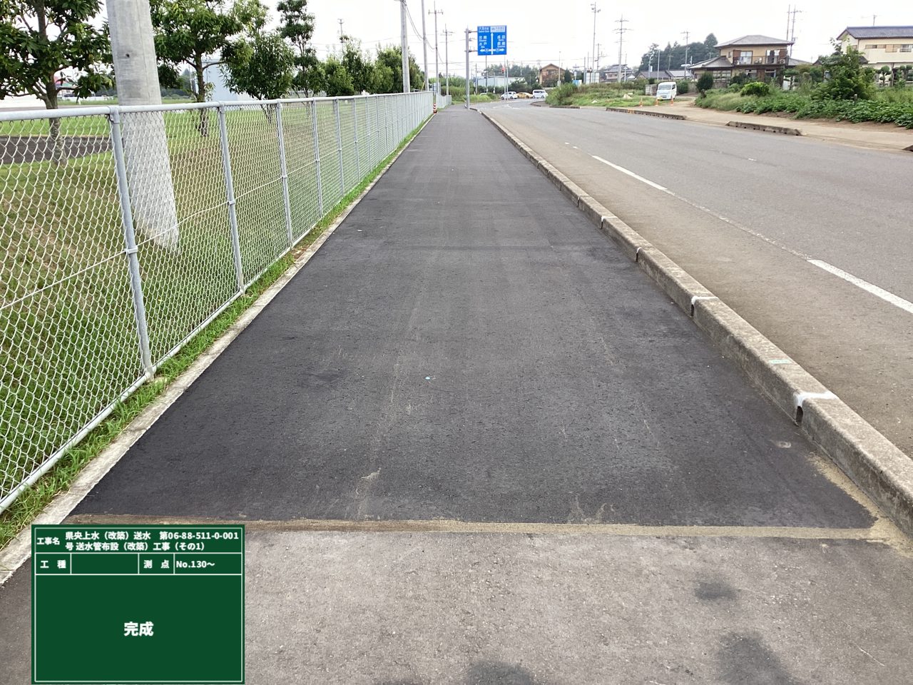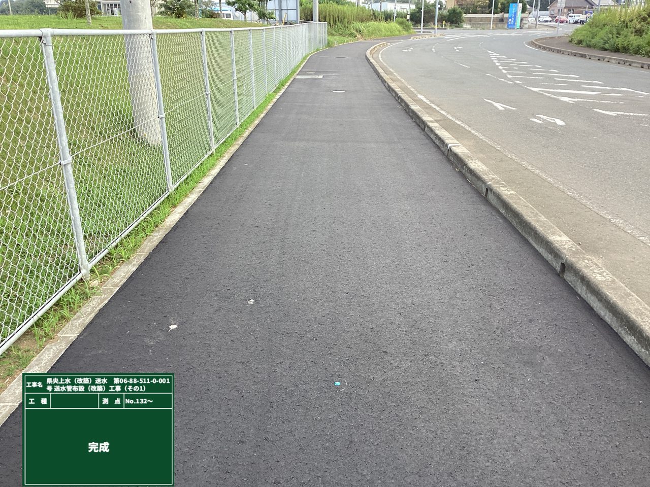 送水管を布設するため、掘削→管布設→埋戻し→舗装復旧を繰り返しています。