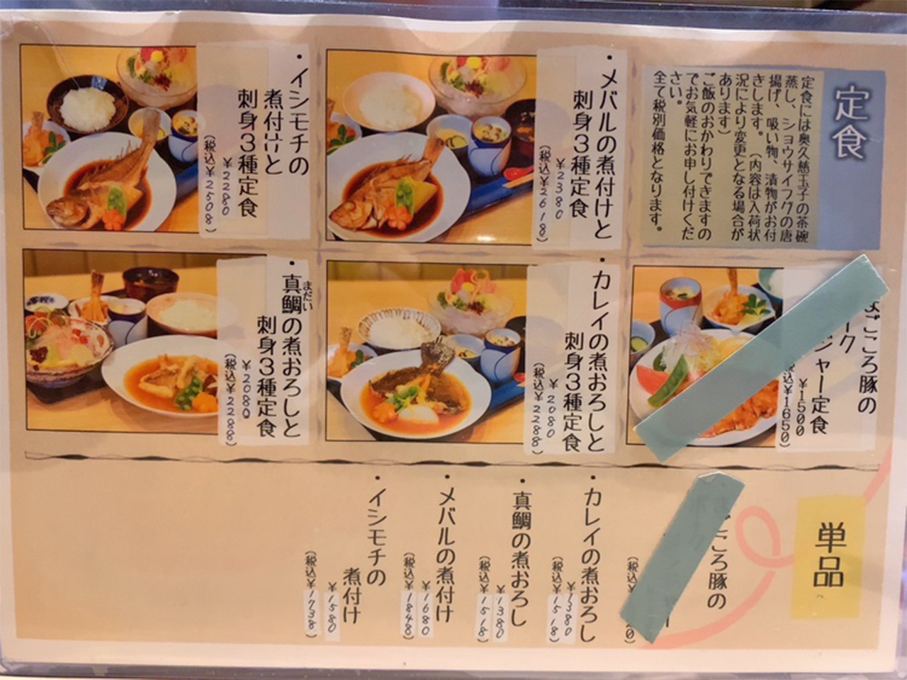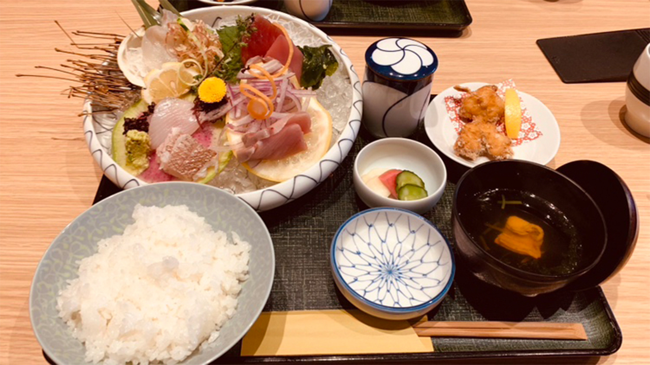 今回は刺身定食と平目の漬け丼を注文です。