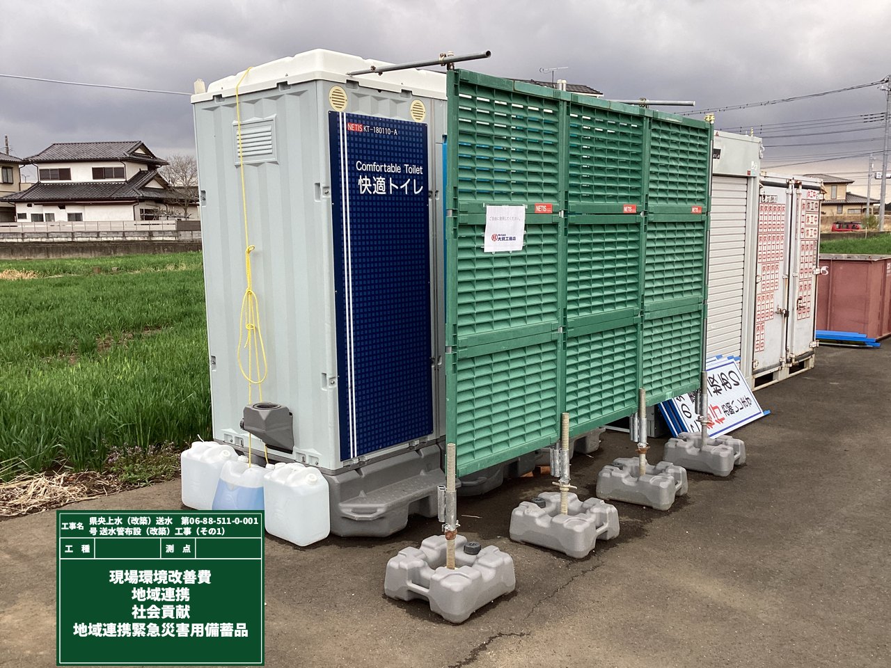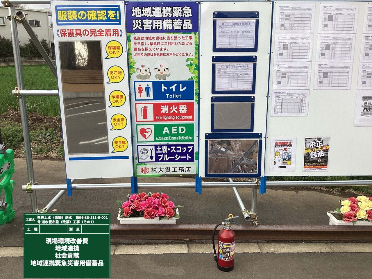 この現場には周辺地域の皆さんも使用できる、緊急災害用備蓄品を用意してあります!