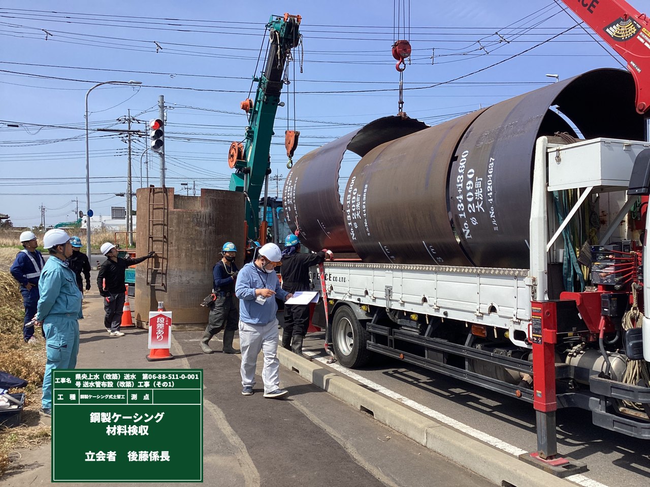 ケーシングの設置完了後は、コンクリートを打設するための準備を進めます。