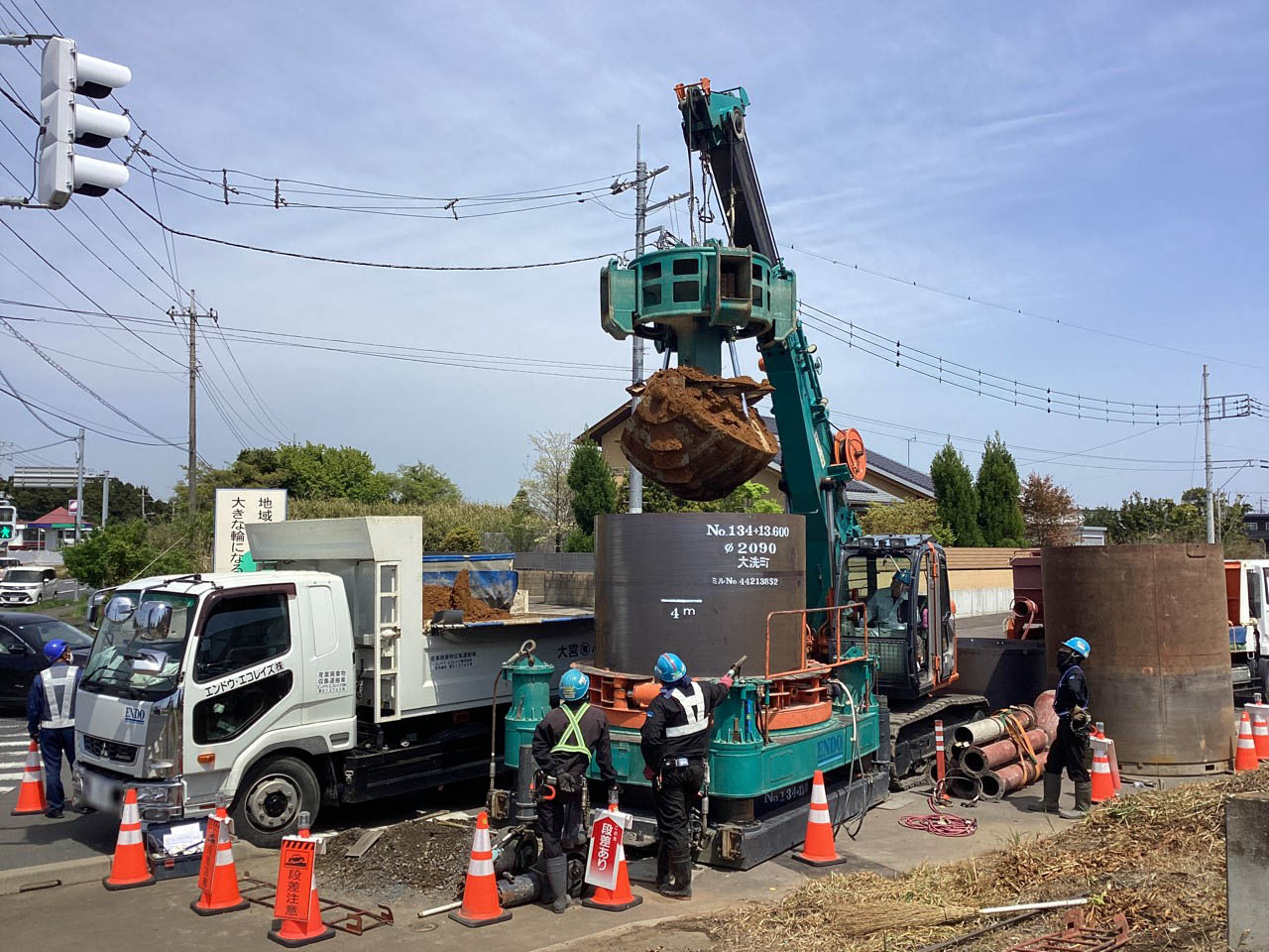 今回の現場で採用しました推進工法は、最小限の交通規制で作業ができること、