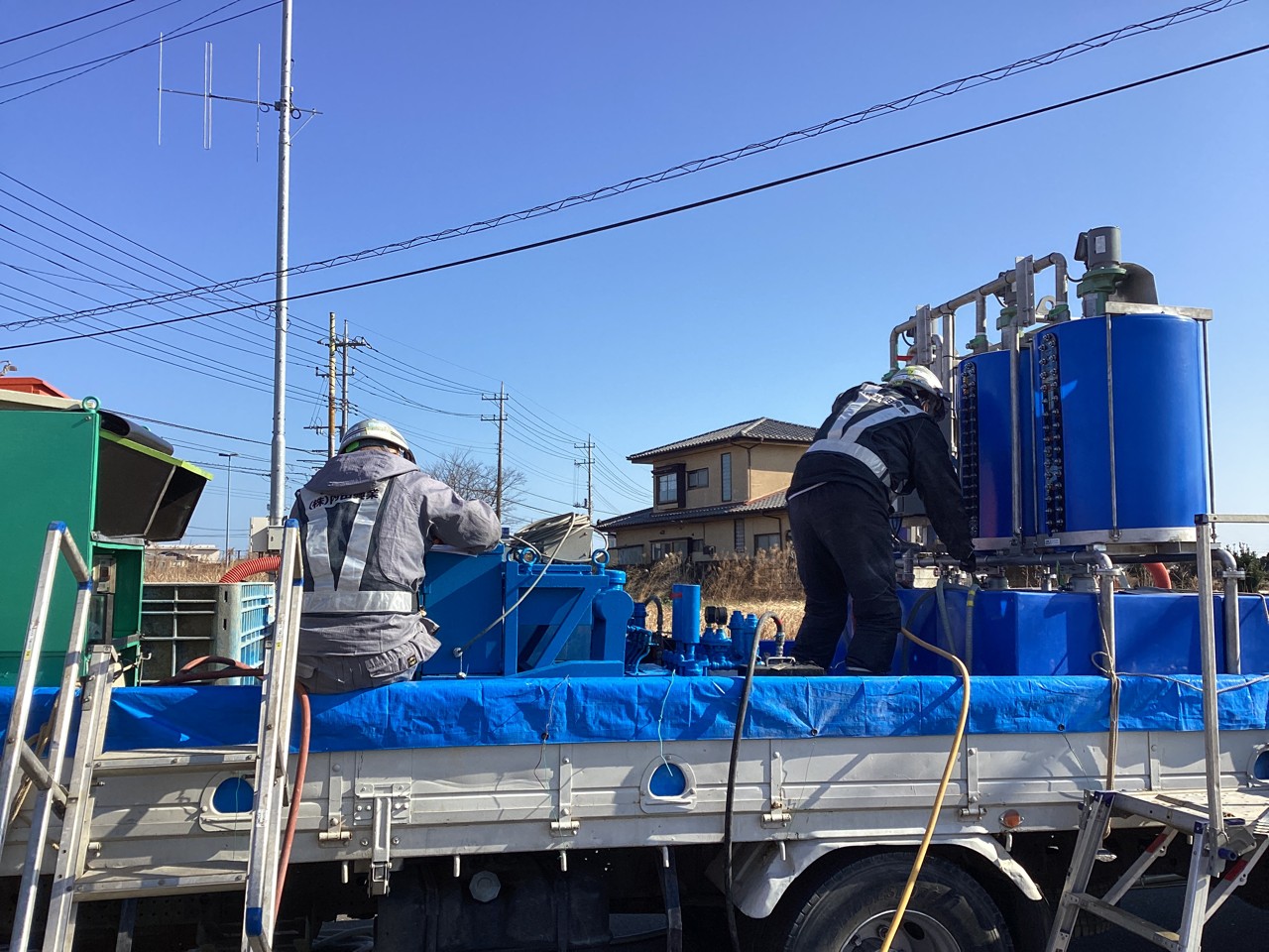 ちなみに、今回の設備は平ボディの車上プラントです。