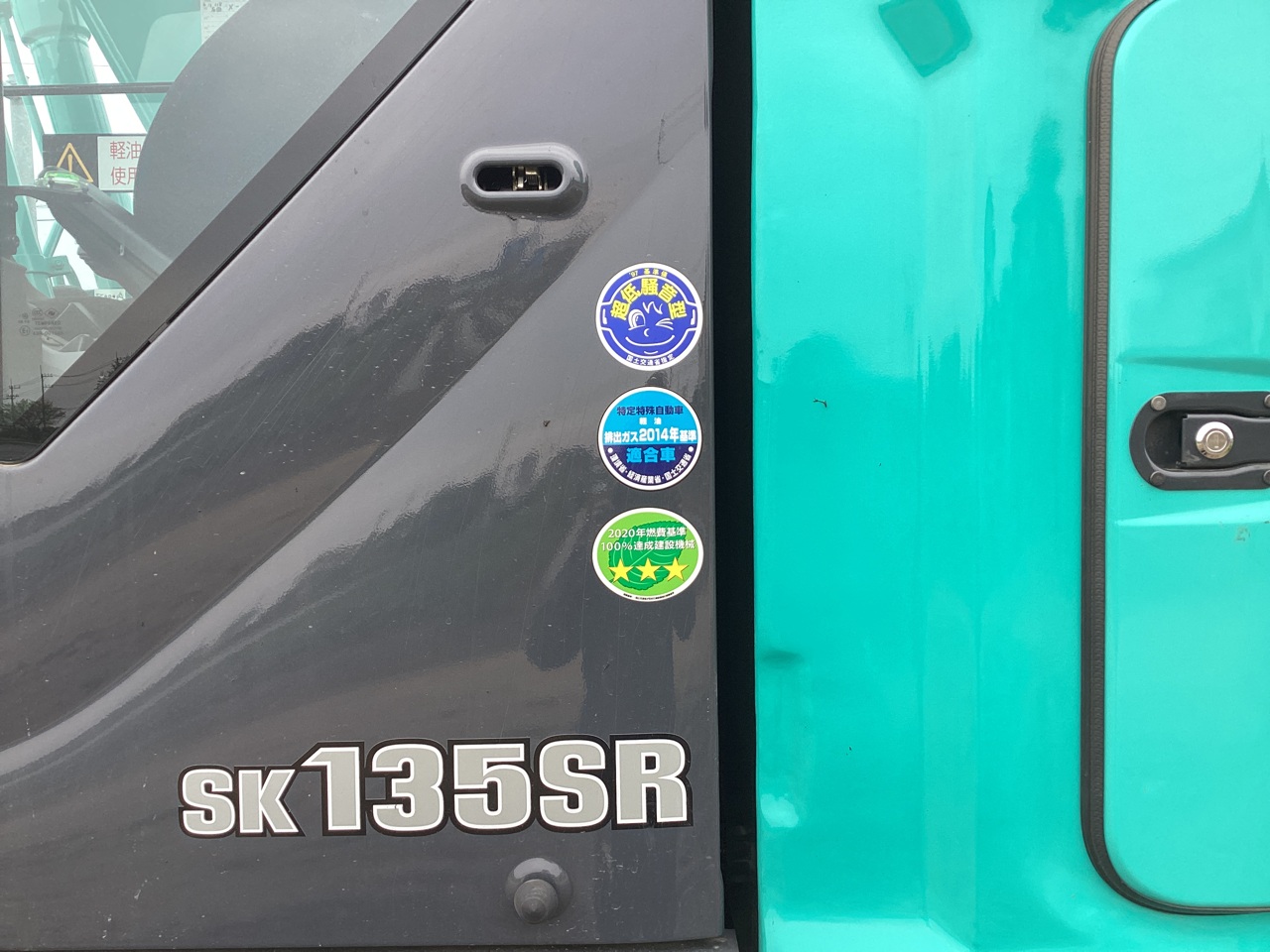 例えば今回だと「超低騒音型」「排出ガス2014年適合車」「2020年燃費基準100%達成建設機械」のステッカーが貼ってあります。