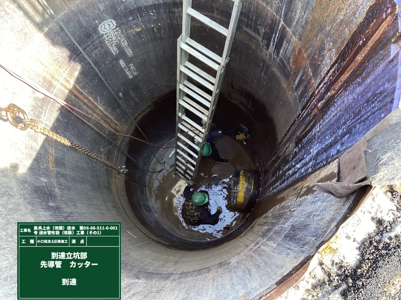 ゆっくりと前進させていた先頭管が、いよいよ到達立坑部に近づいてきました。