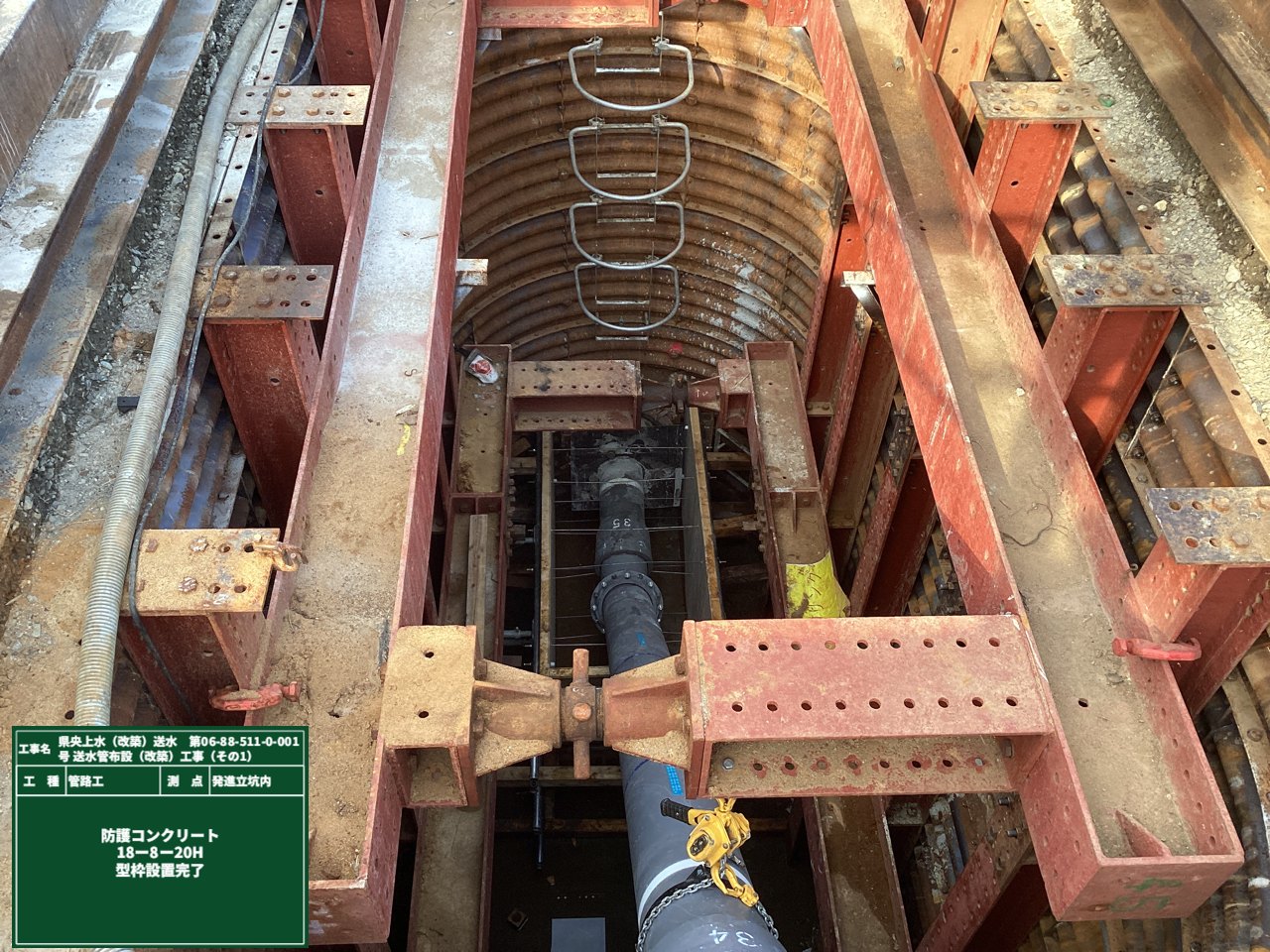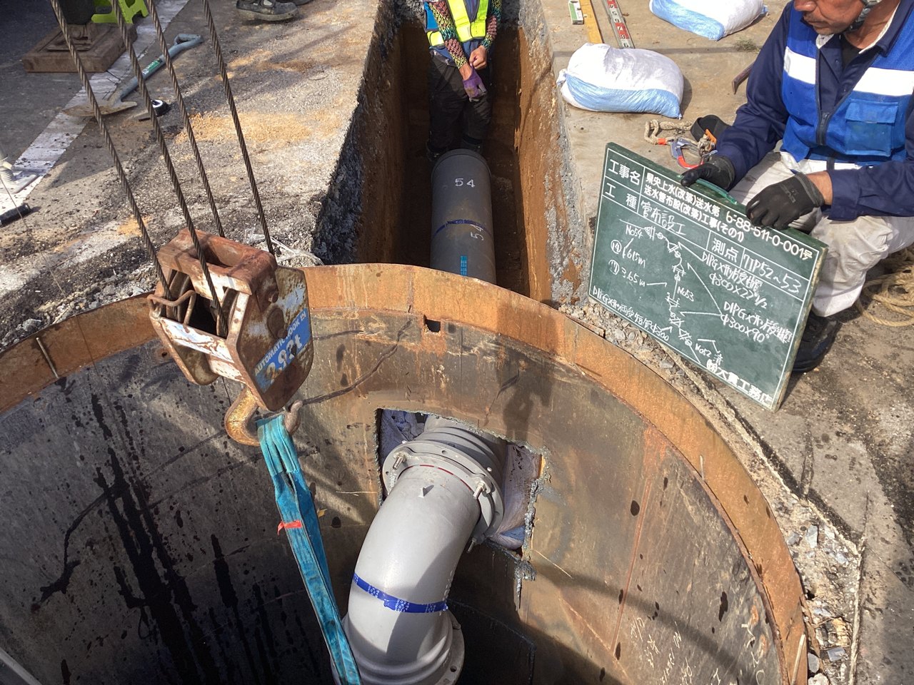 到達立坑と同様に、発進立坑にも新しいGX管を設置しました。