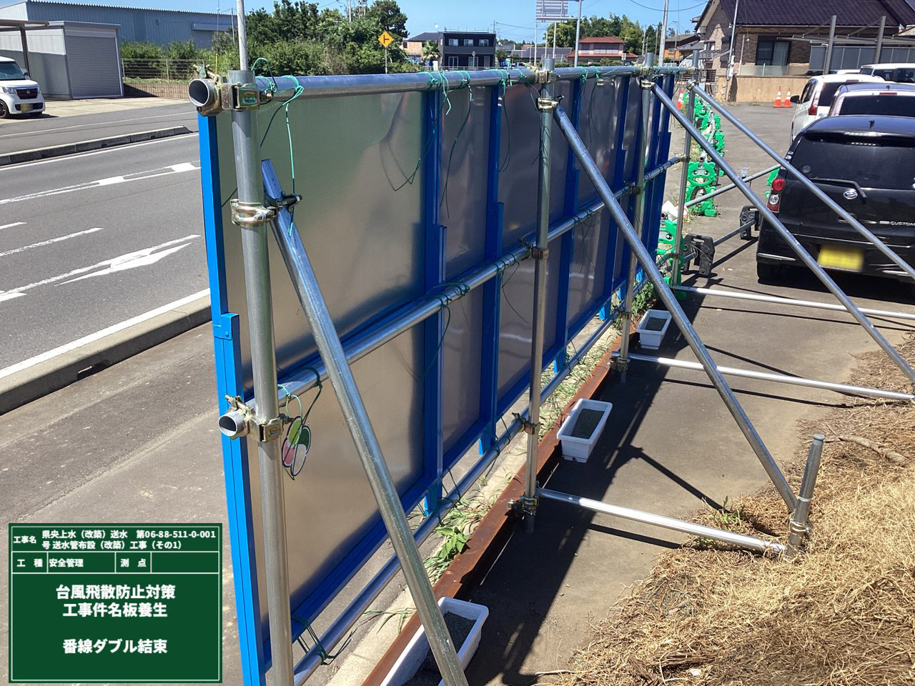 おもりを設置したり、看板の番線をダブルにしたり、とにかく念入りに対策します。