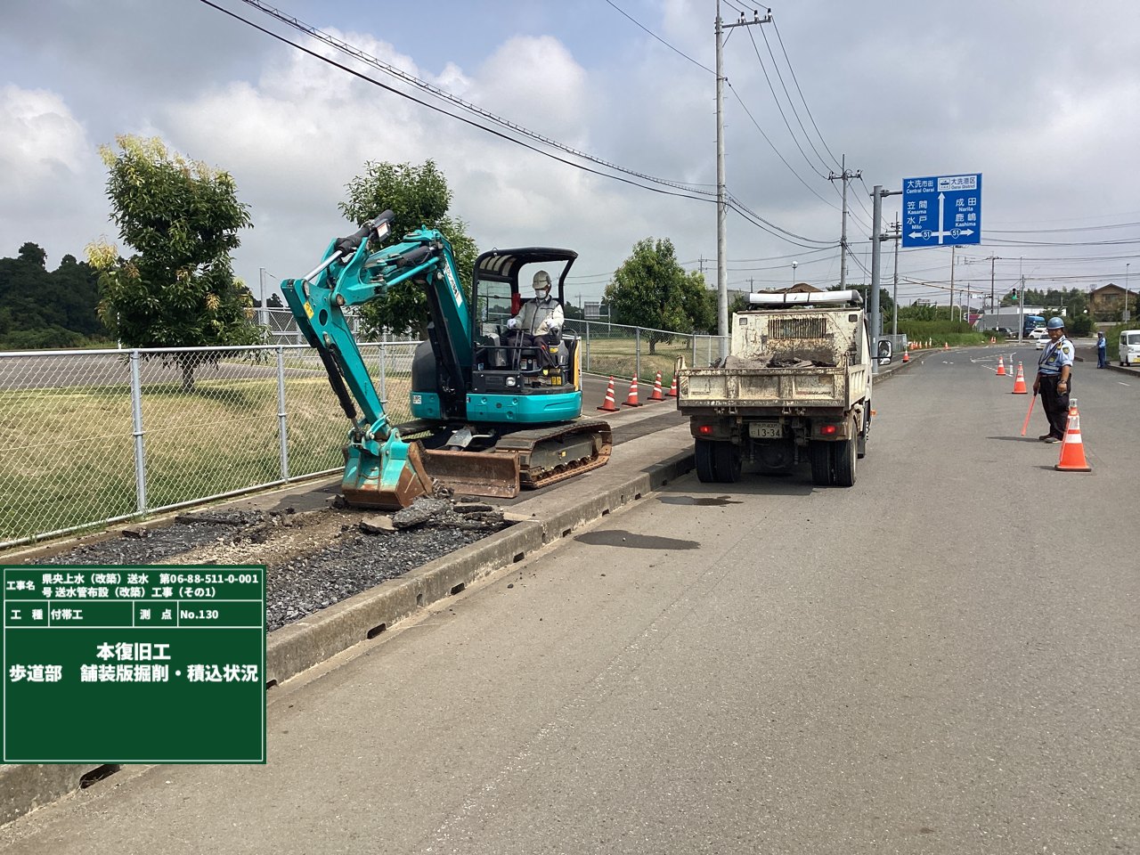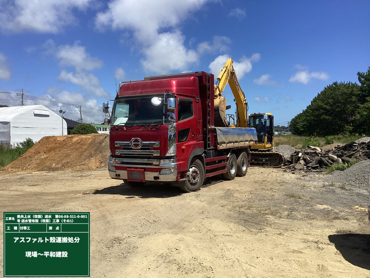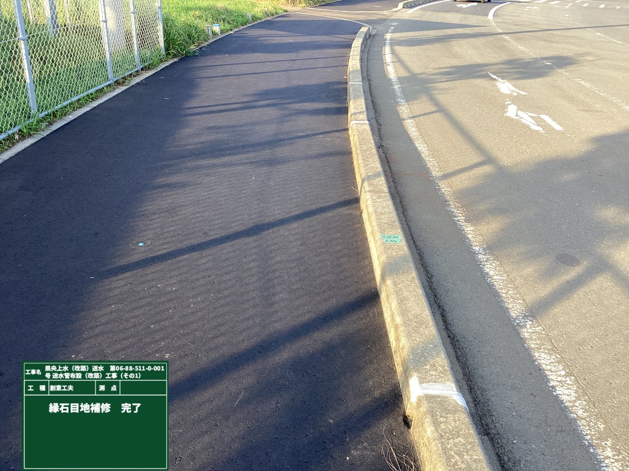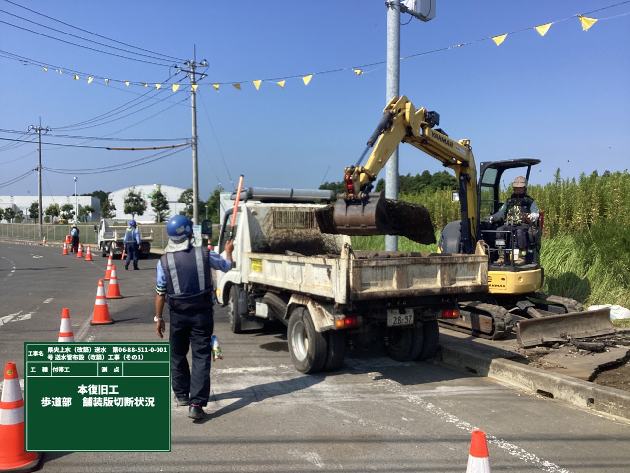 送水管工事の路面復旧は、仮舗装をしていたところを剥がすところから始まります。