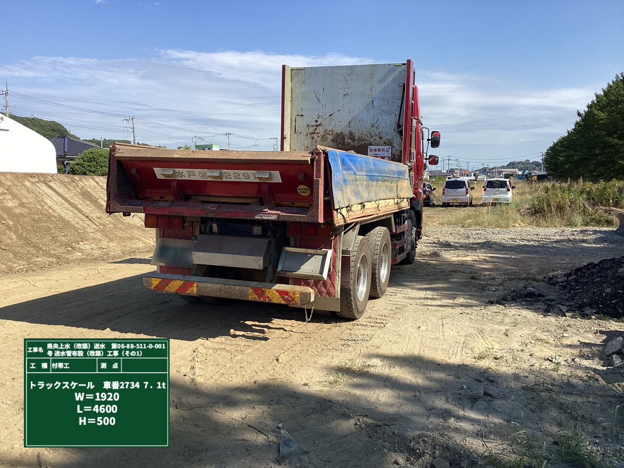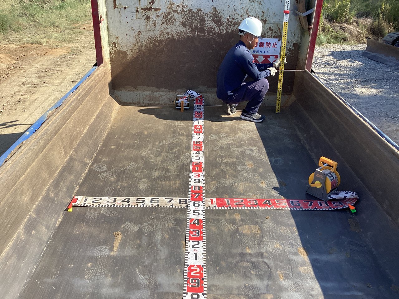 ということで、現場で発生した残土をストックヤードへ搬出するため、どれだけ積めるか計測です📏